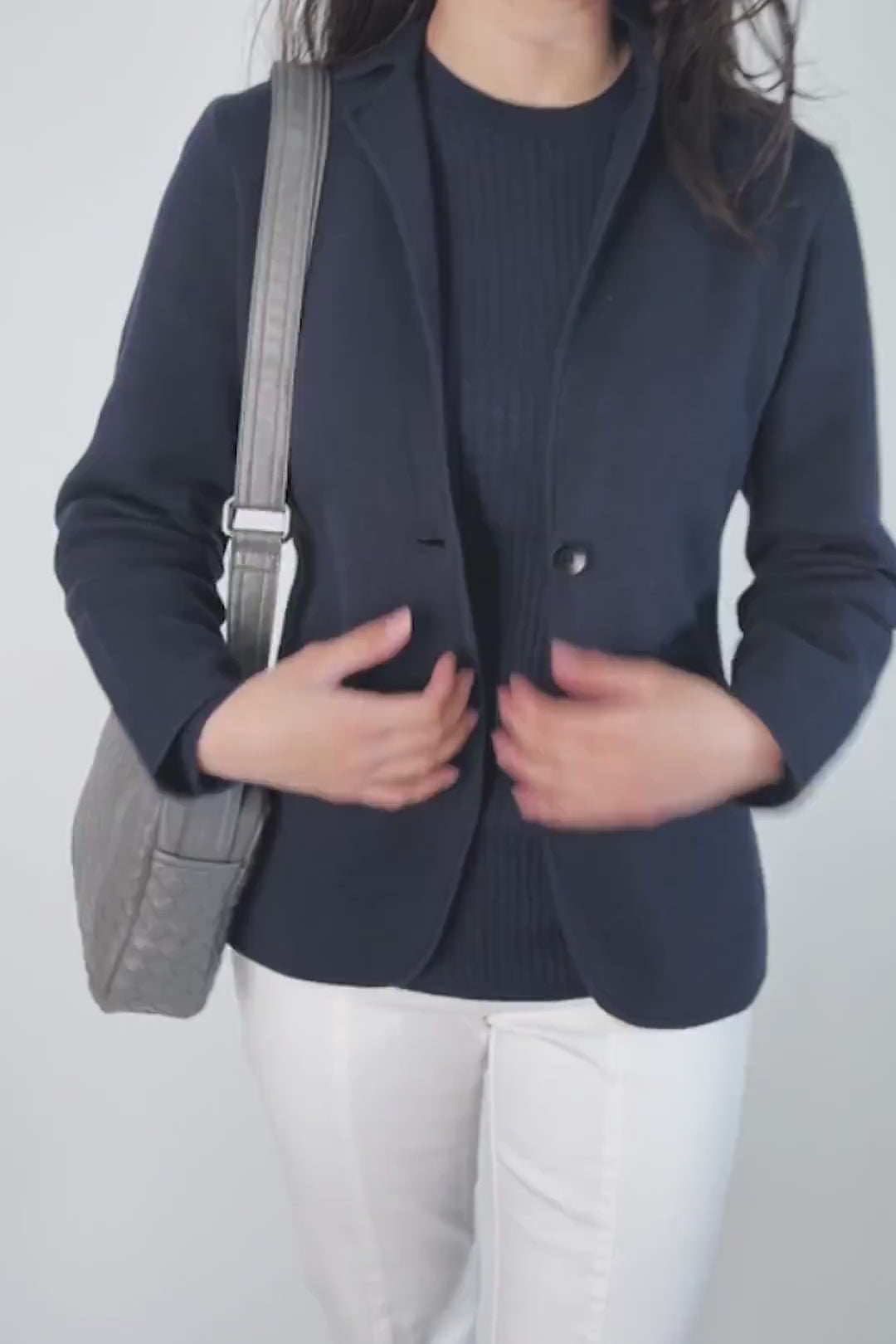 Our Knit Pima Cotton boasts ultra-soft luxury, offering breathable resilience for continuous wear and movement. This 100% Pima Cotton knit blazer is a versatile year-round wardrobe essential. The rib-knit standing collar transitions into Lennox's modern lapel and a two-button closure. Long sleeves and a fitted body are complemented by the soft detail of two front pockets.