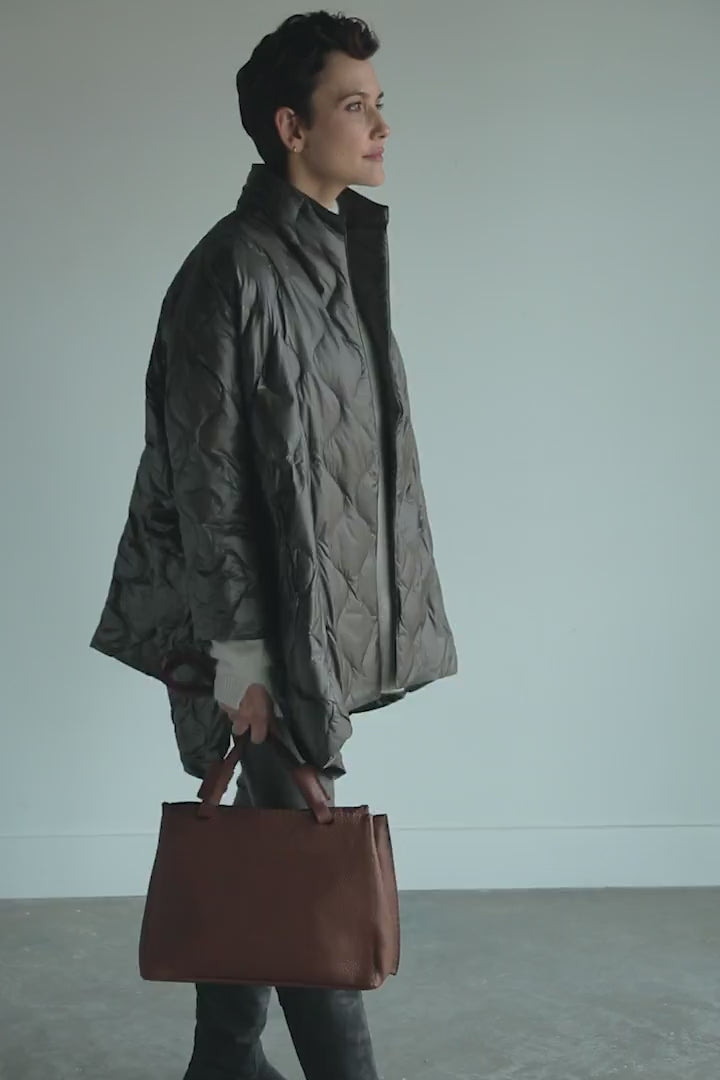 Designed for ultimate ease and wearability, the Cortina Oversized Down Jacket combines a chic, oversized fit with a modern style and cozy down composition. It features a distinctive collar, bracelet sleeves, side pockets, and a dramatic side vent.